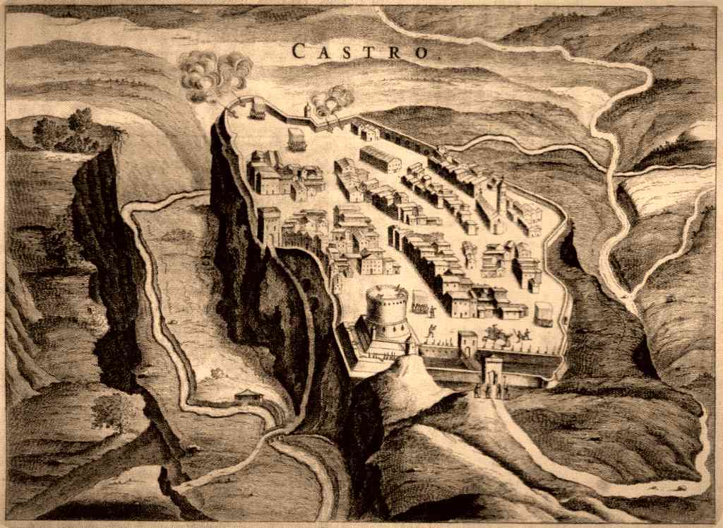 […] Castro prima del saccheggio era una città ricca, munita di più di sette centurie di soldati ed era la più forte tra le città del Patrimonio di San Pietro