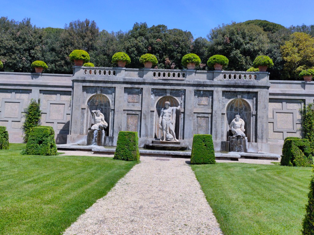 Nel ‘900 iniziarono i lavori di restauro dei giardini, ispirati dalle forme dei giardini della Roma antica come trait-d’union di tutte le epoche storiche che hanno attraversato l’area verde. Quelli che possiamo considerare giardini storici sono: il Giardino dell’Agrumeto, il Giardino del Labirinto, il Giardino degli Specchi e la Scarpata delle Aromatiche.