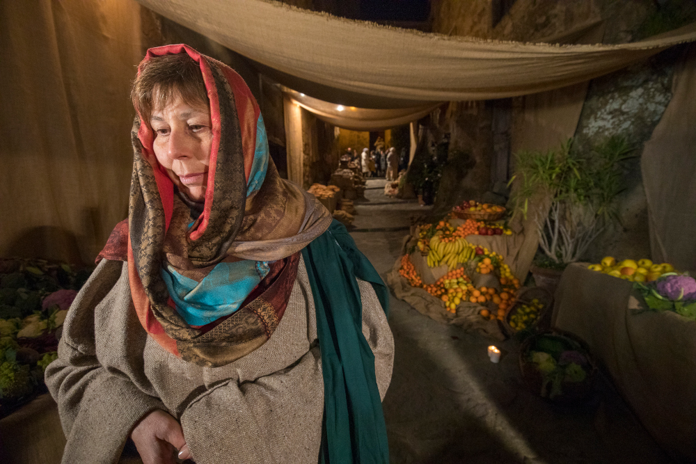Chi arriva a Civita di Bagnoregio, infatti, si sente nell’immediato immerso nell’atmosfera di un luogo lontano fatto di banchi di mercato di stoffe, di frutta e spezie, vecchie ville romane, accampamenti beduini, la via degli artigiani e dei commercianti, i Re Magi e la Sacra Famiglia.