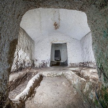 L’intera collina su cui sorge la Necropoli è ricca di scavi. La tomba più grande misura 16 metri di lunghezza con 5 camere consecutive in grado di ospitare all’epoca 19 defunti. La grandezza delle singole camere, alcune di dimensioni notevoli, non è l’unica peculiarità di questa Necropoli. L’intera struttura infatti è disposta su più piani, pare ce ne siano almeno 3.