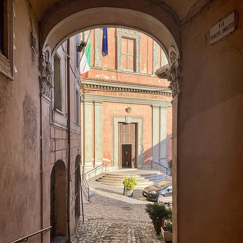 Da lì si possono intravedere le mura di Palazzo Ruspoli, costruit nel medioevo per volere dei conti Tuscolo. Davanti al palazzo si apre la caratteristica piazzetta del borgo pronta ad accogliere gruppi di turisti che arrivano da ogni parte per visitare Nemi.